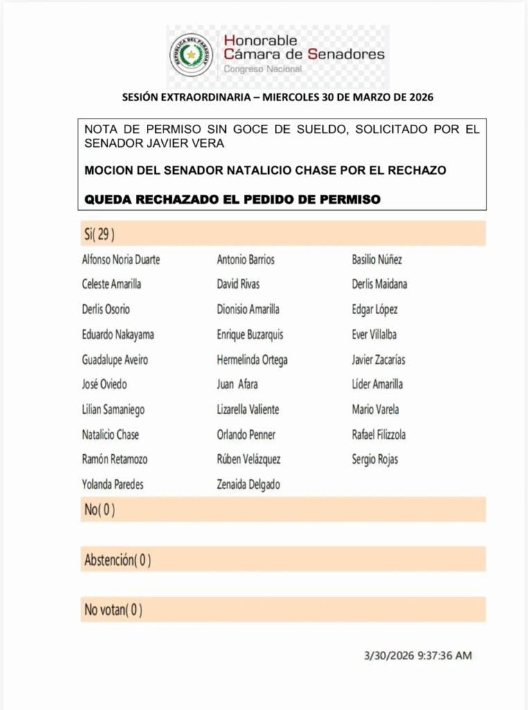 El Senado analizará la posible pérdida de investidura del senador Javier Vera, más conocido como «Chaqueñito», en medio de un proceso que se busca resolver en el transcurso de la jornada.